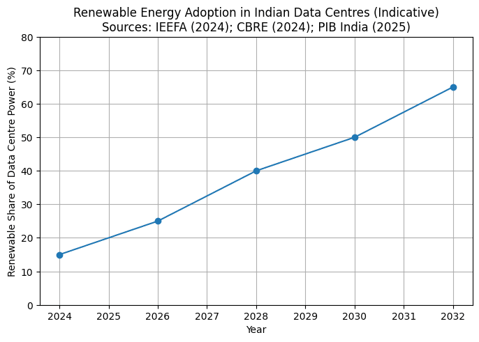 Sector-wide renewable energy penetration is expected to increase from approximately 10-15% currently to around 30% by 2030, supported by fiscal incentives in the Draft National Data Centre Policy (2025). Leading operators are targeting more aggressive timelines: